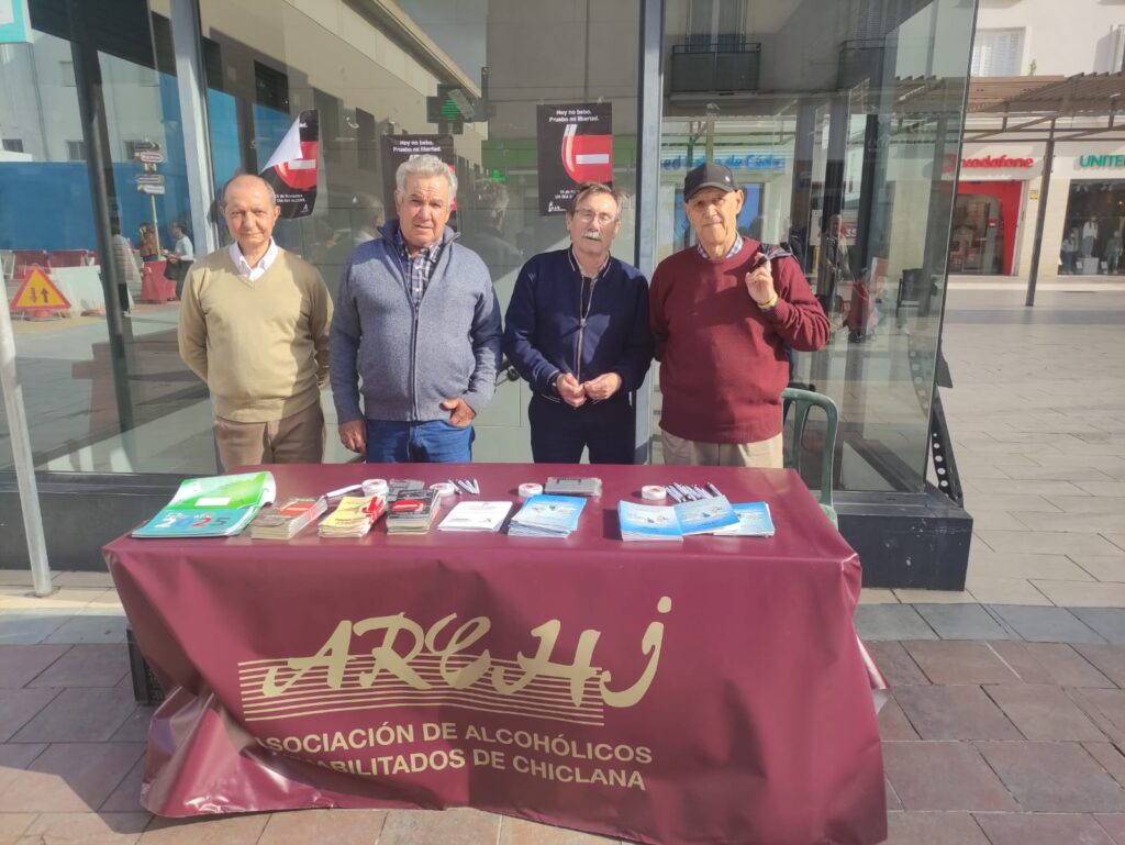 La Asociación de Alcohólicos Rehabilitados de Chiclana – ARCHI celebra hoy, 15 de noviembre, el “DIA MUNDIAL SIN ALCOHOL”. Por tal motivo, esta mañana se ha instalado una MESA INFORMATIVA en la Plaza de las Bodegas, de nuestra localidad, con la finalidad de sensibilizar en torno a la enfermedad alcohólica y  las adicciones.